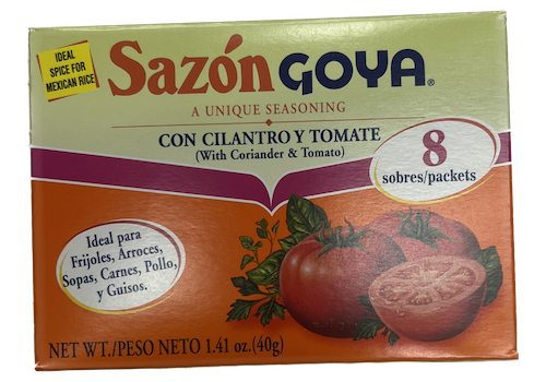 BackSazon Goya Con Cilantro Y Tomate 40g$ 2.99/ EAAdd To Shopping Cart Add to WishlistCategoriesSauces & SpicesDetailsSazon Goya Con Cilantro Y Tomate 40gSKU041331037860